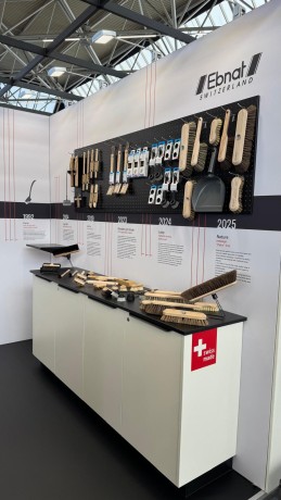 To mark our 111th anniversary, our trade fair stand was dedicated entirely to our company history. A special highlight was the timeline on the back wall of the stand, where visitors could discover a selection of historical product examples - a visible sign of Ebnat AG's continuity and innovative strength over more than a century.