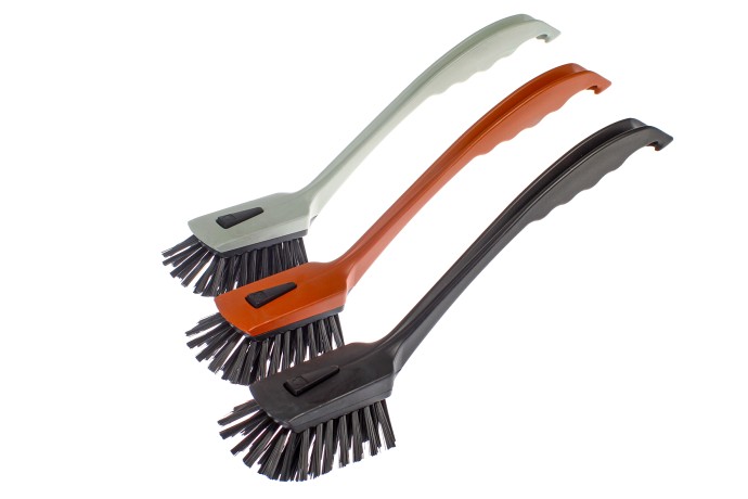 Thanks to an ingenious and stable click mechanism, the handles can be fitted with different brush heads especially for the respective application: soft bristles for glass and delicate pan coatings, hard bristles for stubborn dirt or brass bristles for the grill bars.