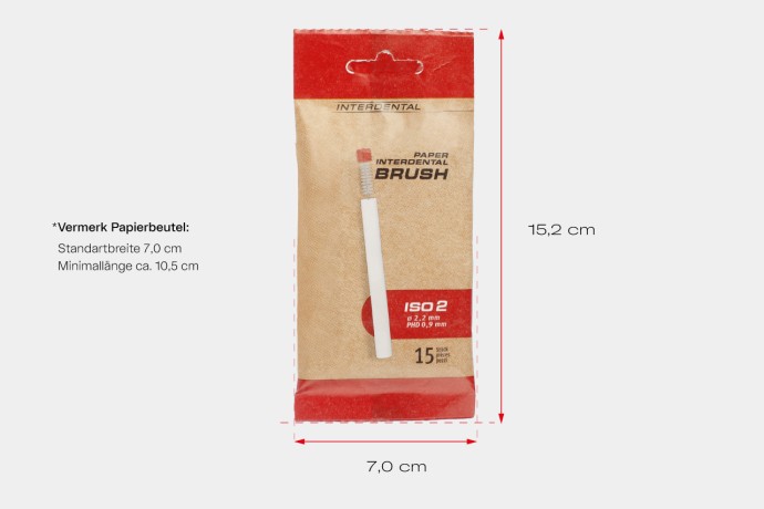Unsere Interdentalbürsten bestehen aus FSC® MIX- und FDA-zertifiziertem Papier. Verglichen mit gleichschweren Kunststoff¬bürsten sinkt der CO₂-Wert um mehr als das Achtfache. Auch die Verpackung folgt diesem Anspruch: ungestrichenes FSC®-Frischfaserpapier, recyclingfähig nach PTS-RH 021/97 und problemlos im Altpapier entsorgbar. So wird die tägliche Zahnzwischenraum¬pflege Teil eines konsequent ökologischen Lebensstils.