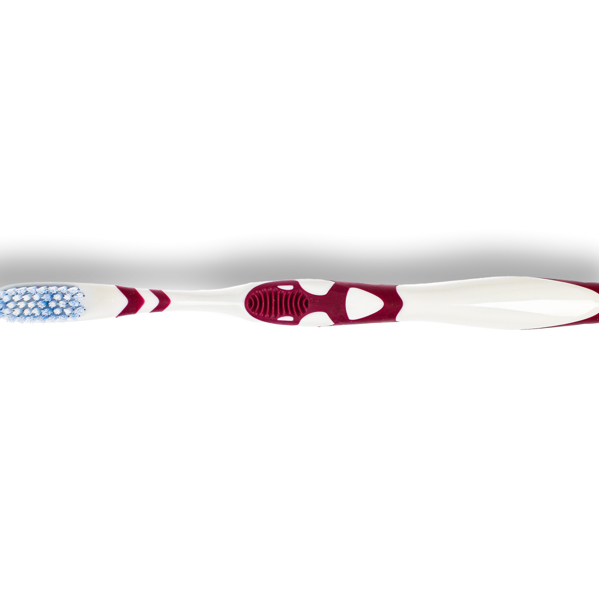 Die Zahnbürste Comet kombiniert modernes Design mit professioneller Reinigungsleistung. Sie ist in zwei Varianten erhältlich – mit Standardkopf oder kurzem Bürstenkopf, der auch die hinteren Backenzähne mühelos erreicht. Der ergonomische Griff mit rutschfesten Daumenmulden und der flexible Halsbereich sorgen für ein komfortables Putzen und schonende Druckverteilung. Optional erhältlich ist ein Whitening-Besatz mit Microgranulat-Borsten, die sanft polieren und Verfärbungen durch Kaffee, Tee oder Tabak aufhellen. Beide Varianten verfügen über den bewährten 3-Stufen-Profilschnitt, der für eine gründliche Reinigung von Zahnoberflächen und Zwischenräumen sorgt. Entwickelt in Kooperation mit einer Schweizer Universität, vereint die Comet Komfort, Flexibilität und geprüfte Wirksamkeit.