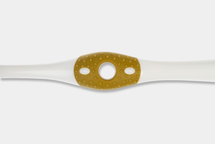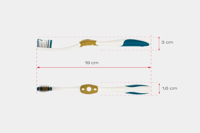 Die Zahnbürste Shorthead Premium bietet ein völlig neues Putzgefühl durch ihr innovatives Design. Das markante Loch in der Griffmitte dient als Daumenmulde und sorgt für optimale Führung beim Putzen. Zusätzlichen Halt bietet die fein strukturierte TPE-Oberfläche, während die Elastizität des Materials übermässigen Druck abfedert. Der kurze, glatte Bürstenkopf erreicht mühelos auch die hinteren Backenzähne. Dank dem Stufenschnitt und einem Mix aus fächerartigen Borstenreihen und klassischen Borstenbündeln werden Zahnoberflächen und Zwischenräume gründlich gereinigt. Entwickelt in Zusammenarbeit mit einer Schweizer Universität, verbindet die Shorthead Premium Design, Komfort und geprüfte Reinigungsleistung.