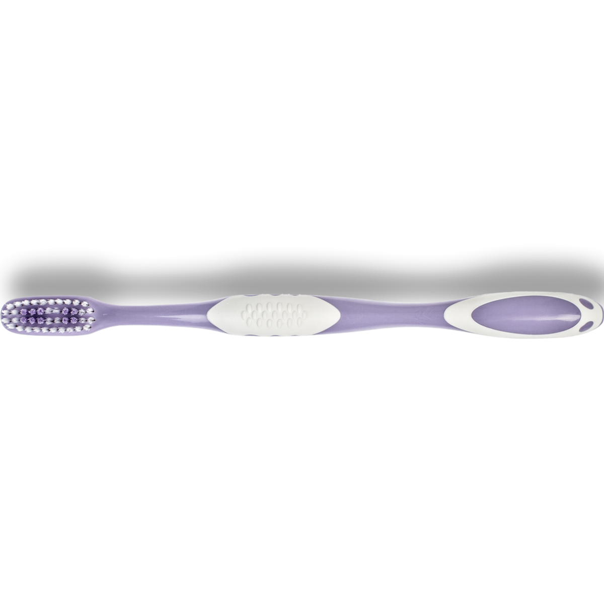 Die Zahnbürste Velvet wurde speziell zur Vorbeugung von Parodontitis und Gingivitis entwickelt. Ihr innovativer Aufbau mit stabilen Borstenfeldern, umgeben von einem Kranz aus samtweichen Pflegeborsten, ermöglicht eine besonders schonende Reinigung von empfindlichem Zahnfleisch und Zahnhälsen. Der Stufen-Formschnitt mit feinen, konischen Borsten sorgt dafür, dass auch schwer zugängliche Interdentalbereiche gründlich von Plaque befreit werden. Der ergonomische Griff mit TPE-Antirutschflächen auf Vorder- und Rückseite gewährleistet sichere Führung und hohen Komfort. Entwickelt in Kooperation mit einer Schweizer Universität, bietet die Velvet eine einzigartige Kombination aus Sanftheit und Effektivität für anspruchsvolle Mundhygiene.