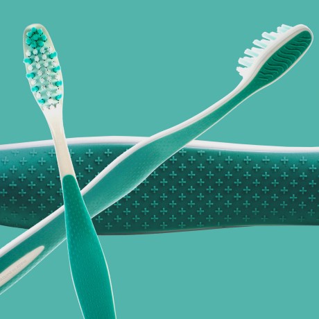 Die Zahnbürste Curve überzeugt durch ihr elegantes, ergonomisches Design mit stilvoller TPE-Antirutschfläche. Schweizerkreuze als dezente Struktur sorgen für sicheren Halt. Daumen- und Fingermulde ermöglichen präzise Führung – für ein angenehmes, kontrolliertes Putzgefühl bei jeder Anwendung.