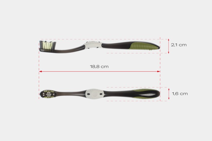 Die X-Cut wurde entwickelt, um Ergonomie, Komfort und Effizienz zu vereinen. Die fein strukturierte Daumenmulde bietet optimalen Halt, während das elastische Material übermäßigen Druck abfedert. Jedes Detail dient einem klaren Zweck: der wirkungsvollen, schonenden Zahnreinigung.