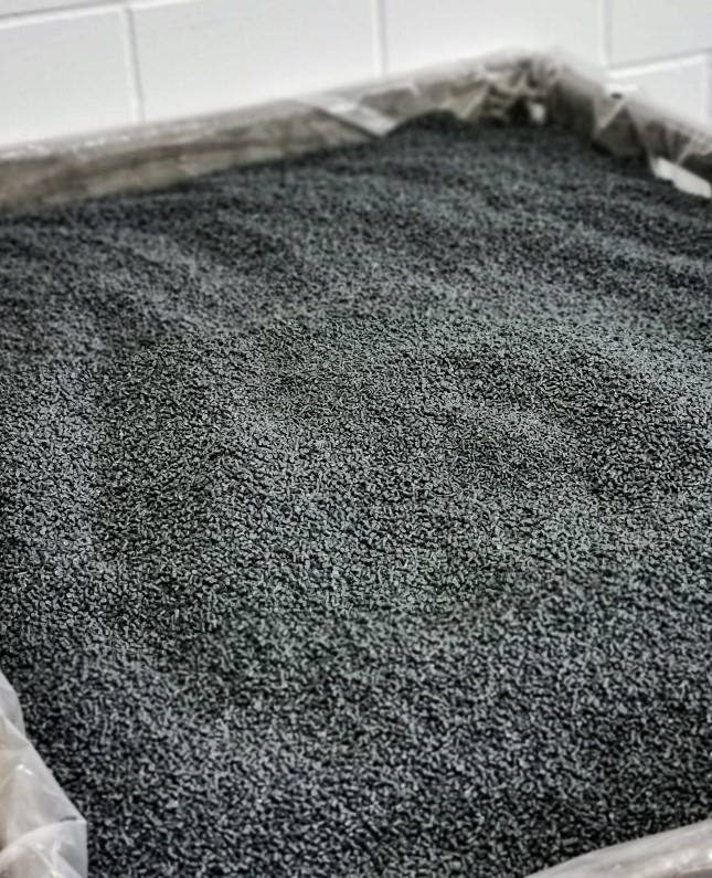 -> PIR-Recycling: Interner Kunststoffabfall wird regranuliert. (Farbwechsel der Spritzgussmaschinen, Fehlproduktionen, Köpfeln der ZB-Ausschussstücke)